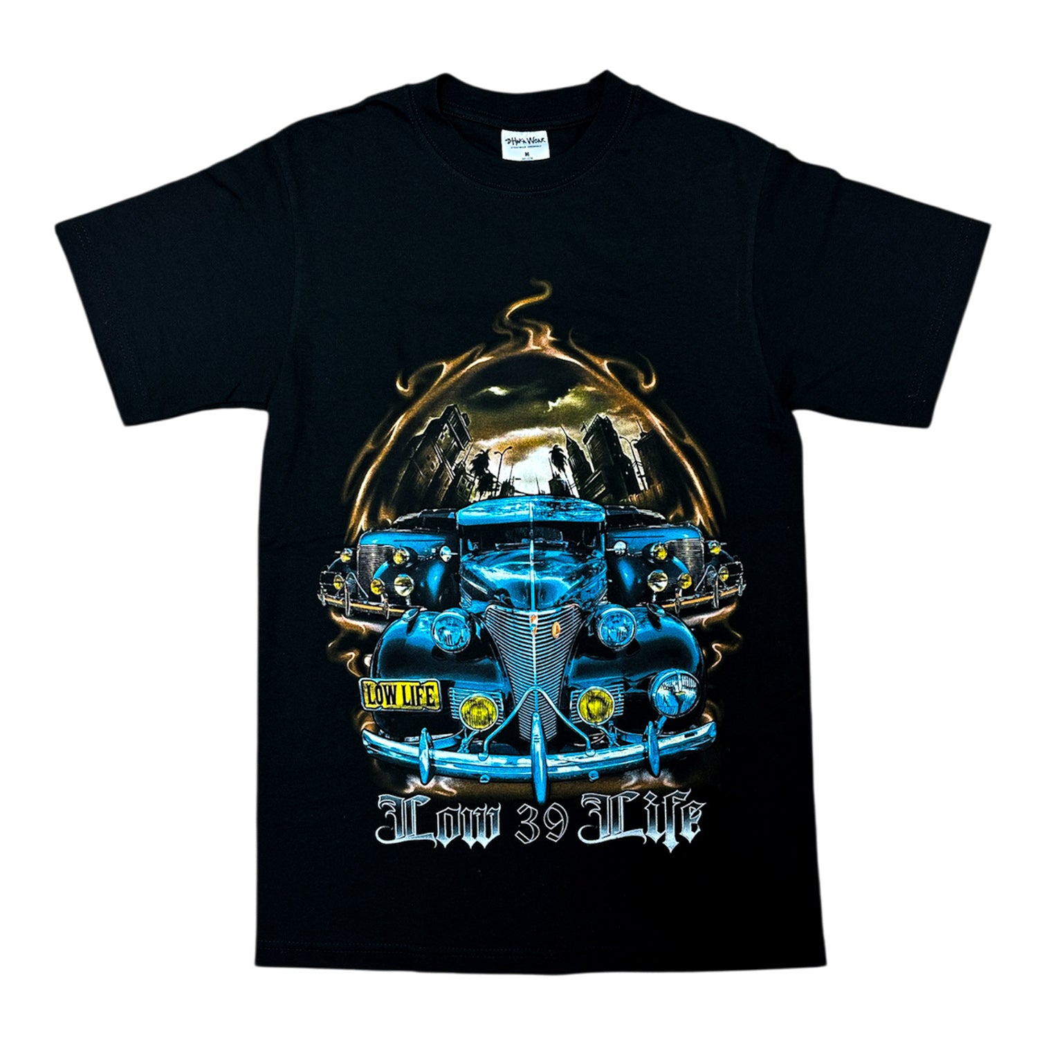 Make a bold statement with the Low 39 Life graphic T-shirt, inspired by classic lowrider culture and West Coast street style. Featuring a striking front graphic of a vintage lowrider car with glowing details and urban scenery, this tee represents pride, lifestyle, and the timeless low life movement.