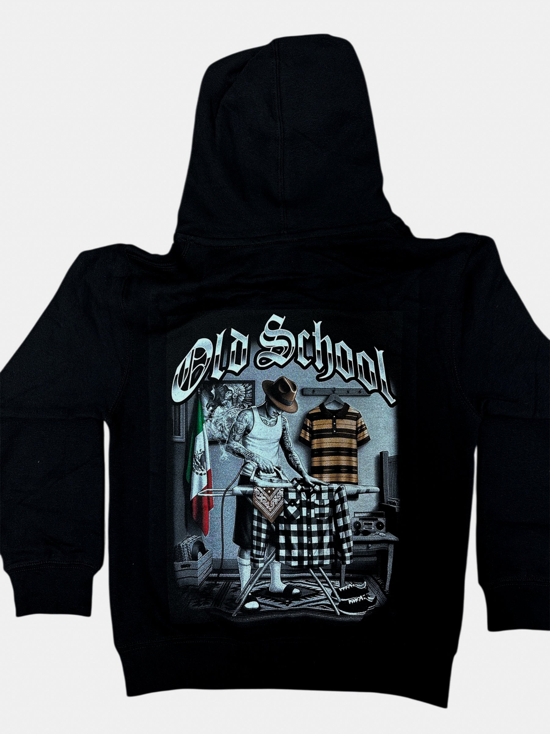 Bring classic street style to the next generation with this Youth Old School Graphic Hoodie. Featuring a bold back graphic inspired by timeless Chicano and old-school culture, this hoodie blends tradition, style, and attitude in a standout design. The detailed artwork and clean black base make it an easy favorite for everyday wear.